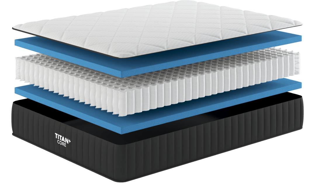 Our core of up to 900 individually encased TitanCore coils means that you enjoy superior motion isolation, edge-to-edge support, and the ultimate shoulder and hip contouring